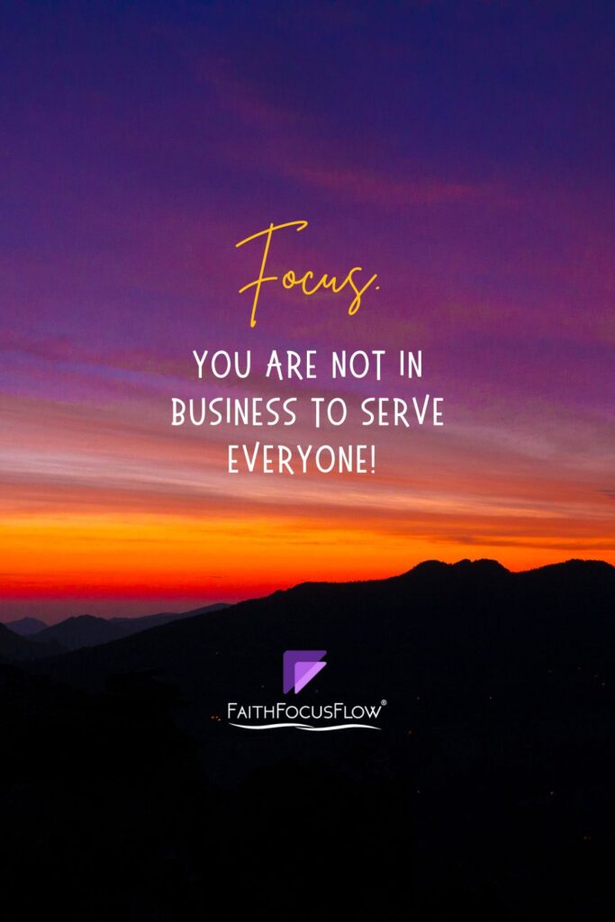 1) You are not called to work with everyone through your business or in your career. Narrow your focus to the niche market God has uniquely equip you to serve. The more narrow your focus, the more targeted what you provide (through programs, products & services) will be, and the more powerful the results from your Work will become.